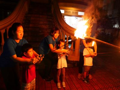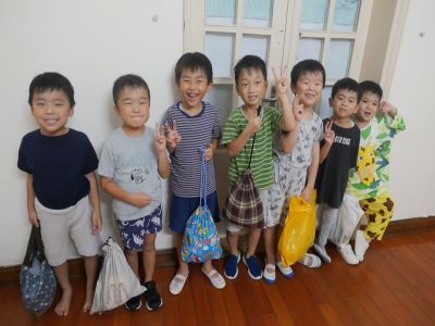子ども達はワクワクドキドキして幼稚園に来てくれました☺ 速報として1日目の子どもたちをお伝えします♪ 残念ながら登園と同時に雨が降り始めてしまったため、 ゲーム~スタンプラリー~ と夏祭りは室内で行うことになりましたが、 わくわくさくらぐみのスローガン【みんなで応援!みんなで楽しむ!】の通り、 思い切り楽しんでいた子ども達でした♪ ◎ゲーム~スタンプラリー~ 同じチームのお友だちと力を合わせてスタンプ集めることが出来ました!!! ◎夏祭り 射的やスーパーヨーヨーすくいなどなど・・・楽しいお店がたくさん!!! お化け屋敷も全員がんばって入りました! ◎夕食 ♪お弁当を作って、さくら組さんと職員みんなで、ピクニック気分で食べました♪ BGMには小鳥のさえずりやセミの鳴き声が。 途中、ゴリラの雄たけび!?にはみんなびっくりでしたが、 お腹一杯、自分だけのお弁当を美味しく頂きました。 ◎キャンプファイヤー 皆の願いが叶いピタリと雨がやみ、園庭でキャンプファイヤーをすることができました! 花火もたのしかったね♪ ◎お風呂 お風呂のあとにハイチーズ♬ 盛りだくさんの活動で少し時間が押してしまい、21:20の就寝となりましたが、 目いっぱい遊び疲れた子どもたちは、大あくびをしながらお布団に入りました☺ 現在は全員ぐっすり眠りについています・・・zzz 職員が交代で、朝まで子どもたちの側で見守っておりますので、どうぞご安心ください。 それではまた明日、お迎えの時間に幼稚園でお待ちしております☺ 子ども達のきらきら光る笑顔と、思い出話を聞けることを楽しみにしていてくださいね♪ (♪) ※インスタグラムでも、子どもたちの様子がわかります。ぜひ、ご覧ください! ベトナム・ハノイの日系幼稚園 さくらHoaAnhDao幼稚園ホームページ |