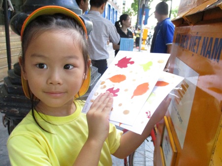 ハノイから気持ちを込めて、各クラスで敬老の日のはがきを作りました。 今日は、そのはがきを投函するために さくら組(年長)が、幼稚園の代表として ホアンキエム湖にある中央郵便局まで出かけました。 みんなから、「いってらっしゃーい!」と言われて、 わくわくドキドキの子ども達。 到着すると、 「ここきたことあるー!」と言って、大喜び◎ まずは、切手をはがきに貼りますが・・・ 「切手って、どうやって貼るの?のり?シール?スタンプ? やったことがないからわかんない!」 と、大騒ぎ。 みんなでどうやって貼るのか教えあいながら、丁寧に貼ることができました。 お水で貼れるのはすごいねーと、感心していました!! そして、一人ひとりが、 「ちゃんと届きますように!」 と、気持ちを込めてポストに投函しました。 他のクラスのお友達のはがきも、 ばっちり、投函できました! おじいちゃま、おばあちゃま^0^ 子ども達の素敵なお手紙、待っていてくださいね!! そして、無事にお手元まで届いた時には 是非ご一報をお願いします♪ そのあと、運動会の取り組みでグラウンドへ行きました。 一年ぶりのグランドを見て… 「なつかしー!!」と、グラウンドへよーいどん!! 広いグランドを走り回って、元気いっぱいの子ども達です。 組体操の活動では、 初めて外の土の上での活動でしたが、みんなで気持ちを一つにして、 出来るところまで、しっかり頑張りました。 リレーの活動では、大事なバトン渡しの取り組みからはじめました。 バトン渡しは、次の人への大事なもので、気持ちを込めて渡すことが出来ないと、 必ず落としてしまう。 と言う話しをしていましたので、 今回は、一度もバトンを落とすことなくできました◎ 走る姿もたくましくなってきました。 天気も良くて、さくら組22名全員で参加することが出来て、 本当によかったです。 運動会の取り組みも、 これからもみんなでひとつになり、がんばっていきたいです! おうちでも、応援をよろしくお願いします。 (#082) ベトナム・ハノイの日系幼稚園 さくらHoaAnhDao幼稚園ホーページ |