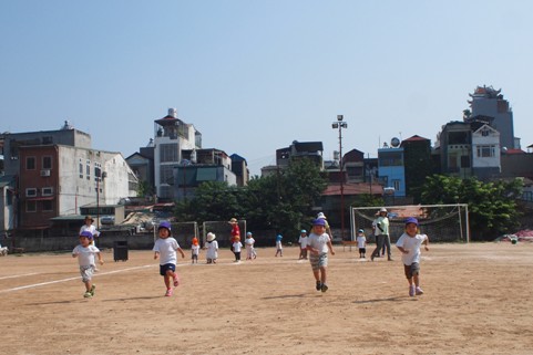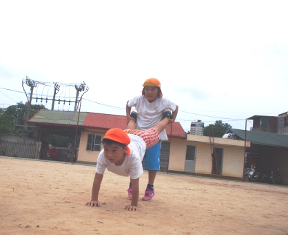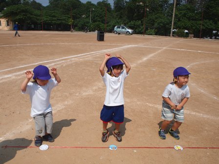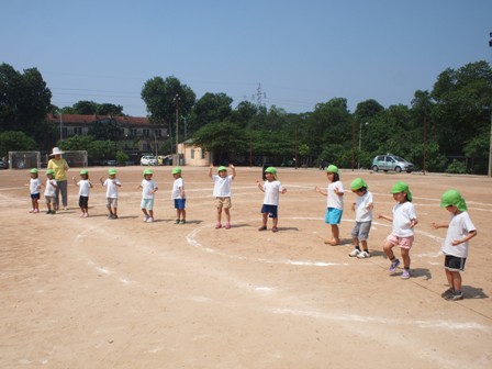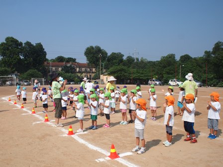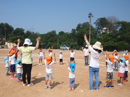 グランド練習も始まり、ますます子ども達の勢いはおさまることがなく、 暑いハノイの中でも、 一生懸命の姿がたくさん見られました。 とんとんまーえ!とんとんまーえ!! これも、意外と…子どもたちにとっては難しいのですが、 笛の合図を良く聞いて、取り組んでいます。 エンディングの体操も、みんなで円になり、 小さなお友達に教えあいながら踊りました。 各クラスのかけっこです。 さくら組(年長) 競争心が燃えていました! すずらん組(年中) 走る早さも早くなってきました!! なのはな組(年少) たのしくみんなで走る姿が、かわいいですね!! もも組、いちご組(年々少) 小さな体で一生懸命走る姿が見られました!! 初めてのグランドでも、 かわいい姿を、どのクラスも見せてくれました◎ もも、いちご組(年々少) なのはな組(年少) すずらん組(年中) さくら組(年長) 外で、暑い中の組み体操の活動も、みんなで気持ちを高めて、取り組む姿に、 すでにジーンときました。 これから、まだまだ続くグランド練習ですが、 体調にも十分気をつけて、 気持ちを高めて、たのしく元気に参加していきたいと思っています!! 保護者の方々のご協力も、ありがとうございます。 (#082) ベトナム・ハノイの日系幼稚園 さくらHoaAnhDao幼稚園ホーページ |