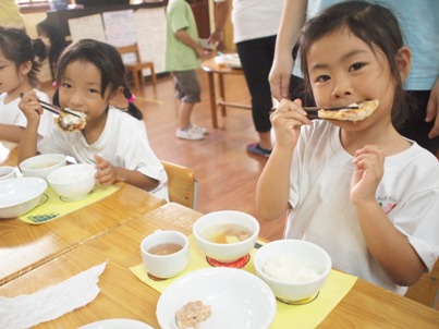 二学期が始まって、初めてのクッキングをさくら組さん(年長組)がやりました。