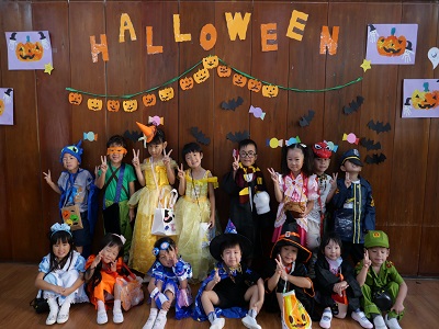 10月28日に、ハロウィンお楽しみ会をしました! 朝、かわいい衣装に身を包んだ子ども達が続々と登園!(^^)! |