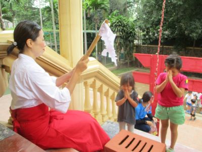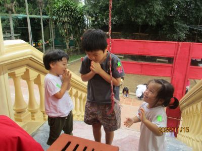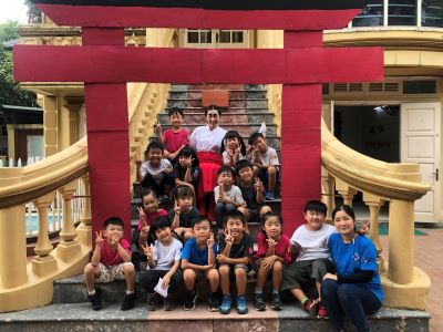 いちご・もも・なのはな・すずらん組さんに見送られて、幼稚園を出発!! 40分ほどのバスの車内では、しりとりやお話に夢中のさくら組さんでした☺ バッチャン村の工房に到着し、まずはバッチャン焼きが出来るまでの様子を見学しました。 写真の左側にある筒の中で型取りをしていく工程を見ています。 真剣な職人さんの姿に、子ども達もじーっと静かに見つめています・・ 大きな窯の中に入る前は、「おばけやしきみたい・・」「ちょっと怖いなぁ」といっていた子ども達。 中に入ると、「広ーい!!」「ここで焼くんだ~!」とあたりを見回しながら見学していました☺ 歩いていると大きな壷を発見!!!! 「僕たちより大きい!!!」「高~~い!!」と大きな壷と背比べしていましたよ♪ 次に、ろくろ体験をしました☺ まずは、どうやって作るのか見せていただくと、どんどん粘土の形が変化していく様子に目が点の子ども達!!! 今度は、子ども達がやってみます♪ 初めはどうやってやるのか???だった子も、次第にコツをつかんでいき、コップやお皿などを作り楽しんでいました☺ ろくろをまわすのも、お手の物です!(^^)! 最後は、お待ちかねの【卒園記念製作】です。 丸いお皿に絵を描いてお皿づくりスタート♪ 幼稚園で考えたデザインを見ながら、一筆一筆、とっても慎重に描いていました☺ 描いたお皿は、ここで焼いていただき、卒園式の日にプレゼントをします♪ 「早くほしいな!(^^)!」「何のご飯のせようかな?」と完成を楽しみにしていた子どもたちです。 ベトナムの伝統にも触れ、貴重な1日になりました! 帰りのバスではぐっすり眠っている子もいましたよ・・・Zzz (♪) ※インスタグラムでも、日々の様子が見られますので、そちらもご覧ください!(^^)! ベトナム・ハノイの日系幼稚園 さくらHoaAnhDao幼稚園HP |