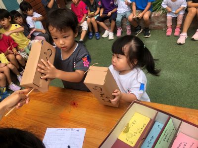 ホールでは、4月からの制作を家族の方々と観ながら、 『これは〇〇してつくたよ!』『これは〇〇で作ったんだよ!!』 と色々な所からお話が聞こえてきました。 自分が頑張って作った作品、友だちとダイナミックに行なった活動、 展示は全クラスの作品を季節ごとに展示しています。 また、4月からの成長や年齢ごとの成長を感じながら、見る事ができます。 園舎には、家族の方からの心がこもった展示も飾られています。 1つ1つ、心のこもったメッセージ付きです。 子ども達も、『私の(僕の)あった!! 』『〇〇ちゃんのあった!』と楽しみながら見ていましたよ。 毎年毎年テーマが変わり、今年は子ども達が大好きな、、、 『おかしのせかい』でした。