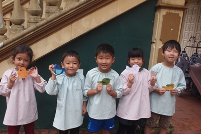 まってました お友だちと久しぶりに会えることが嬉しくて、キラキラ笑顔が光っていました さくら組(年長)は、3月で卒園します。 卒園に向けての活動、最後の幼稚園生活をしっかりとたのしんでいきたいと思います コロナ対策で幼稚園がお休みをしていた期間に、 各ご家庭に製作キットなどを配りました。 それを、「できたよー!!」と言って、すてきなお雛様を作って持ってきてくれました 一緒に作れなかったことはすごく残念でしたが、 「ここがねー!」「ここはちょっと違う風に作ってみた」と、 たくさんお話をしてくれて、すごく嬉しかったです 休みの間に節分の鬼も幼稚園に来ていたようで、、 鬼からの手紙が届いていました 子ども達も「・・・おにきたの?」と、目を丸くしていましたが、 手紙の内容を読んで 「みんなでがんばりたいことわすれない!」 「お話を聞く!」と、また気持ちを引き締めていました 卒園アルバムの表紙作り 画用紙で自分を作っていきました◎ お友だちと話しながら、「服は何色にしようかな」とたのしくできました 完成を楽しみにしていてください 3月の掲示板は、さくら組のみんなが製作したもので装飾されます。 今年は、一人ひとり個性あふれた鳥を作りました。 好きな画用紙に体を描き、切っていきました 作品を見ると、子ども達の発想の無限性を感じますね 卒園文集作り さくら組は毎年、卒園記念品として文集を作っています。 幼稚園生活のかなで、 すきな給食のメニュー、大きくなったらなりたいもの、 幼稚園の思い出を、一人ひとりが考え書いていきます。 お友だちと話をしながら、「こんなことあったよねー」 「クッキングのグラタンおいしかったー」と、思い出を話しながら、 幼稚園生活を振り返っています。 このような当たり前の時間がなによりも大事で、 一人ひとりの気持ちがしっかりとわかる時間でした。 もちろん あやとりも上手になり、友達同士で技を考えたり、 教えあったりする姿も見られています 広い園庭では、思いっきり走り回ったり、 みんなでドロケイやおにごっこをしてしっかりたのしみ、 子ども達の笑い声が園庭に広がっています 久しぶりのお弁当の日もありました やっぱり、大きくなってもお弁当は嬉しいですし、 「みてみてーぼくのお弁当 お弁当の日にご協力をして頂き、本当に感謝です。 子ども達が楽しみにしている日でもあり、 お弁当もピカピカにして帰りますので、 最後のお弁当の日まで、よろしくお願いします 食後の歯磨きの毎日の姿。 この姿も、もう見れなくなるとなると思うと、本当にさみしくなりますね。 子どもの成長はあっという間で、 毎日関わっていると、見過ごしてしまう事や ついつい「ちょっと待っててね」「あとでやろうね」なんて、 言ってしまうことが多いですが、 『今!!』の子ども達の気持ち、想いをもっと大切にしてすごしていきたいと思います。 (#082) ベトナム・ハノイの日系幼稚園 さくらHoaAnhDao幼稚園ホームページ |