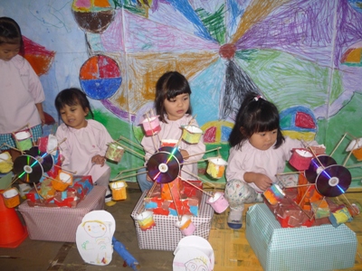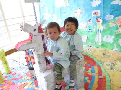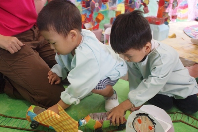各クラスに分かれて、遊びに行きました。 ★いちご、もも組★ 『きょうはさくららんどへ遊びにみんなでいくよ!!』っと伝えると、 『やったーーー★』っと大喜びのこどもたち。 人気のプラネタリウムは、すてきな音楽とすてきな星が創り出す空間に、 時間を忘れてずっと星空を見上げているこどもたち。 『あっっ!ひこうきぼし!!』『ねこざはどこ~?』っと星座探しにも夢中です。 こちらは、自分で動かして遊べる汽車コーナー!! お気に入りの汽車を見つけてレッツゴー!! こちらも人気のメリーゴーランド!! この馬乗ってみる??っと聞くと、ボクもワタシもっと大喜び 台に上って自分で馬に座ろうとする姿も!! 自分が好きなコーナーでしっかりとあそび大満足のいちご・ももぐみでした★ きいろちゃん ★なのはな組★ きょうなにするのー?と、子ども達から聞かれて、、、 「今日はさくららんどに遊びにいくよー」「やったー!!」と、 大盛り上がりで遊びに行きました。 「ここつくったよねー!」と、子どもたち同士で話が盛り上がっていました。 「バスのるー!!」と、1人のお友達が言い出すと、 「わたしもー!!ぼくもー!!」と、友達大好きなのはな組が炸裂して、 みんなでいっしょに乗って楽しみました。 大人気だった観覧車も、順番にくるくると回して、 「何色にしようかなー」「わたしはー」 と、自分で行きたいところを決めたりして、世界が広がっていました! こちらの汽車もやっぱり人気で、自分たちで動かして遊ぶことが出来るのも嬉しくて、 「どこにいこうかなー」と、夢が膨らんでいました◎ 一人ひとりが、おもいっきり楽しむことが出来た、*さくららんど*でした^^ #082 ★すずらん組★ さくらっこ美術館が終わって燃え尽きた感のある顔で登園したすずらんぐみさん(笑) 「ちょっと待った!今日はまださくららんどで遊べるよ!今日はさくららんどに行くぞー!!」と言うと、 さくららんどに着いてすぐにそれぞれ乗りたかったメリーゴーランドに乗ったりバスにみんなで乗ったり、 自分たちが作ったさくららんどで遊ぶことができて、きっと深く思い出として残ったと思います (Potato) ★さくら組★ さくら組は11:00からさくららんどへ遊びに行くことを伝えていたので、 それまでの間楽しみに、そわそわしながら過ごしていました。 園庭で遊ぶ子どもたちに見送られながら出発!! みんなで入り口で記念撮影をしました 早速自分たちが作った惑星たちを発見!! プラネタリウムには全員で入って見ました メリーゴーランドは白のお馬さんが大人気!!3人乗りまでしちゃいました きゃーきゃー大喜びの子どもたち。 作品を作り上げる楽しさや達成感はもちろん、異年齢でのグループ活動そ通して、 小さなお友だちと一緒にいる楽しさにも気がつくことができたさくら組のこどもたちでした。 (りんご) 各クラス、しっかりとさくららんどをたのしみました。 友達同士で、「ここ作ったよねー」「お姉ちゃん達がやってくれたよねー」 と、グループ活動のことを、昨日のように話す姿もみられ、 みんなで作り上げることが出来てよかったです。 子どもたちの中でも、行って楽しかった遊園地ランキングのなかに、、 *さくららんど*が入ってるかもしれませんね^^ ベトナム・ハノイの日系幼稚園 さくらHoaAnhDao幼稚園ホームページ |