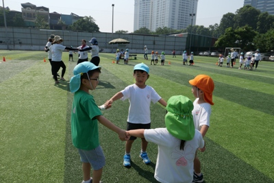 子どもたちも、このハノイの暑さに負けない、元気パワーで取り組んでいます。 グランド練習も、3回目が終わり、子ども達のやる気も毎回パワーアップしています! 小さなお友達も、グランドを楽しみに登園し、 お兄ちゃん、お姉ちゃん達にお手伝いしてもらいながら、たのしく取り組んでいます。 さくらっこの良さでもあり、異年齢の活動を通し、 小さなお友だちと一緒に取り組み、憧れの気持ちを持って活動に参加し、 思いやる気持ちが育っています。 この運動会を通して、 お兄ちゃん、お姉ちゃん達の姿を見て、小さなクラスのお友達も、 さらに大きく成長していると思います! さくらっこ、みんなで大きく成長している姿を楽しみにしていてください。 今年も、未就園児のお友達も参加できる活動も予定しています。 後日、詳細をお知らせしますので、ぜひ!ご参加下さい◎ #082 ベトナム・ハノイの日系幼稚園 さくらHoaAnhDao幼稚園ホームページ |
