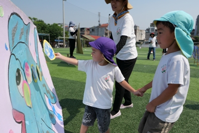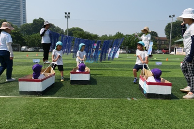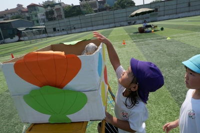 グランド練習も始まり、運動会への気持ちも、ますます高くなってきています。 なのはな組(年少)は、 ダンス、かけっこ、親子競技(運動あそび)に参加します。 すぐにダンスの曲も覚えて、曲を流すと自然に体が動いていました。 「今日もダンスするかなー?!」と言って、大好きな活動のひとつになりました。 かわいい姿や、一生懸命の姿を、見せてくれています。 小さなクラスのダンスは、親子でダンスをするので、 一緒に他のクラスのダンスもたのしんでいます! 外が雨の日には、広いホールでかけっこの活動も取り組んでいます。 思いっきり走り、体を使って過ごせる事! 子ども達にとって、大切なことですよね!! なかなか、ハノイではできないことを、 幼稚園でしっかり取り組むことができています! がんばる姿や、笑顔が、きらきらと輝いています。 親子競技の運動遊び! さぁー、、これはどんなことをしているのでしょうか?! そして、遠くに見えるものは、、なんでしょうか?! どんな取り組みをするのか、お楽しみに!! 応援グッズも作りました。 「がんばれ~!!」と、元気いっぱいの声が届くように、 【メガホン】を作りました。ストロー通しに、折り紙をはさみで切り糊で貼って、 簡単に出来上がり、さっそく、さくら組のリレーを応援しました。 子ども達の声が広がり、さくらぐみの勢いが増していました。 写真でも伝わる白熱した、戦いがありました!! どのクラスも、運動会に向けてたのしく取り組んでいます。 まだまだ、ハノイは暑く、キラキラと汗が輝いていますが、 元気よく心も体も成長している姿をたのしみにしていてください! #082 ベトナム・ハノイの日系幼稚園 さくらHoaAnhDao幼稚園ホームページ |