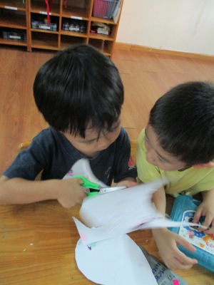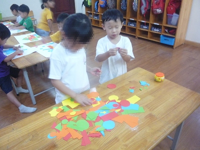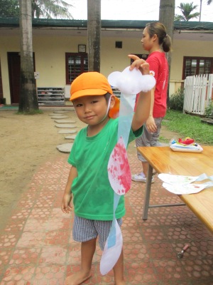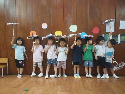 最初は「かさだぁー』と、喜んでいた子ども達でしたが、 「コマにもなるよー!!」「頭につけるとヘリコプターみたい!!」と、 楽しい発想が、どんどん出て来ました 傘を持って、、、ハイ もくもく こんなキレイなしずくなら、雨の日も楽しくなりそうですね さて、、、何になるかな 「赤がすきー!」「しかくがいいなー」子ども達の発想力が爆発です はらぺこあおむし、おにぎり、おだんご、おすし、 きのこ、蒸気機関車、、、 おうち(「これは〇〇のお部屋」と、それぞれの部屋まで、しっかりと考えられていました みんな楽しそうに、図形パズルを組み合わせていました。 大きいと思っていた画用紙でしたが、 あっという間に、子ども達のイメージが溢れて来ました。 出来上がりを、さくら組と見せ合いをしました。 一人ひとりが、自分で作った作品を発表して、 聞いてもらえる喜びを感じていました。 お友達同士の作品を教えてもらい、「それいいねー」と、 コメントを言うお友達もいて、 さらに自信がつき、たのしい活動となりました これからも、図形パズルを楽しんで活動していきたいです 他にも、手型、足型で孔雀を作ったりして、 室内でもしっかり楽しんで過ごしています こけし ベトナム・ハノイの日系幼稚園 さくらHoaAnhDao幼稚園ホームページ |