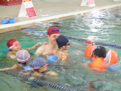 色々なことが最後の活動になっています。 毎月のルネサンスのプールの活動も、この日で終わってしまいました。 「あぁー今日でさいごか。。」 と、さみしそうにしていましたが、それでもやっぱり園バスに乗り込むと、 嬉しくって「早くいこー!!」と、盛り上がっていました。 少し早く到着するので、イオンの周りを散歩して、「早く開かないかー」 と、待ち遠しい子ども達の様子がありました^^ すっかりルネサンスの先生にも慣れて、 元気にはじめることが出来ました。 各グループに分かれてスタートです◎ プールサイドで、バタ足の活動です。 みんな、先生の指導でしっかり手を伸ばして、 ばたばたと水しぶきを上げて取り組んでいました! こちらは、プールに向かってバタ足の活動です。 みんな上手に、できていましたよ◎ ビート板を使った活動です。 以前までは、顔を水につけて泳ぐのは少し怖かったお友達も、 今では『どうぞー』の先生の合図で、すーっと泳いで行く姿がありました。 プールを習っているお友達もいるので、 長い距離をすでに泳ぐことが出来るお友達もいます。 いつもとは違って、クラスのお友だちと泳いだりできるのは嬉しいようで、 何度も往復しても、笑顔で活動しています! このように、 一人ひとりに合った活動ができるので、 「出来るようになった!!」 「今日は、ここまでできたよ!」という気持ちが持てます。 そこはいいことですよね! 最後は、しっかりプールで遊んでたのしんでいます! 子どもたちも、先生としっかり関わることができて、 楽しい時間を過ごすことができていました! 終わった後のあいさつも、バッチリ出来ています◎ さくら組は最後の活動でしたが、 最後までしっかり楽しむことが出来て、自信もついて、 一ヶ月に一回のプール活動でしたが、いつもとは違う環境での活動で、 しっかり楽しむことが出来ました! 苦手だった子どもたちもいたのですが、 出来ることが増えていて、いい時間を過ごすことができました。 帰りは、お疲れのお友達もいたのですが なんと!! この日で幼稚園バスに乗るのも最後だったので、 子どもたち同士で、わいわい話しをしたり、 生活発表会での、他のクラスの劇遊びをしたりして たのしく帰りました。 (#082) ベトナム・ハノイの日系幼稚園 さくらHoaAnhDao幼稚園ホーページ |